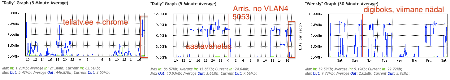 Teeme teaduskatse: panin täpselt sama saate samas sekundis pooleks tunniks mängima paralleelselt Chrome brauseris teliatv.ee lehel ja tavapordis Arris5305. Peaks tulema täpselt sama kraam? Vähe sellest, et silm näeb 4K-kuvaril ja keelatud pildiparandustega 4K-telekas erinevat pilti, näeb seda ka ruuter. Võta riiulist defaultkonfis suvaruuter, pane püsiühendus+Arris külge ja proovi ka, kas läheb kehvemaks icon_smile.gif NB: kui multicastiga on striim kogu aeg sama kiirus, siis tavapordis sõltub saatest: uued saated 7,5Mbps, vanad madalamalt.
