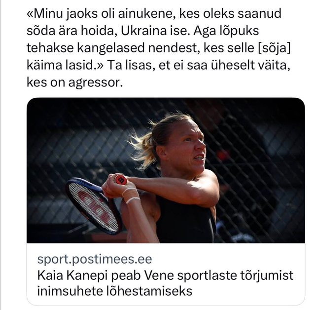 Sportlane ütleb, et sport ja poliitika on lahus, see tähendab , et Venemaa toetaja kohe... no olgem nüüd natuke mõistvam teiste arvamuste suhtes.