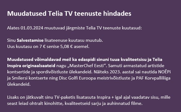 käisin telia tv teemas vaatamas, siis nägin jah, et ka teised teenused kallinesid.