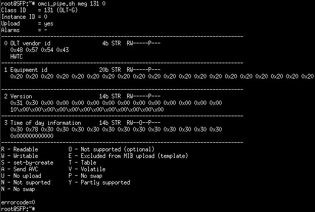See näib olevat "ONU Management and Control Interface"(OMCI) spetsifikatsiooni(lk 160 - 161) poolt ette nähtud ja näiteks Telia Huawei HG8010H puhul päritav "omcicmd mib show meid 131 instid 0" käsuga: