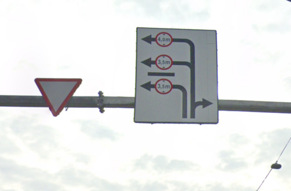 Seda on liigutatud keskmisesse ritta, et 4 m kõrgune sõiduk saaks paremale Tehnikasse keerata  |