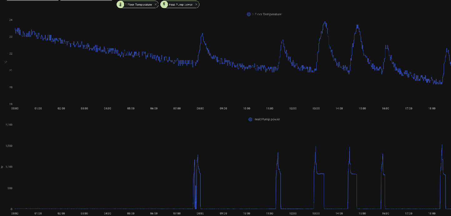 a) 8kw oli võetud pumba statistikast jah. Minu pump tundub, et näitab adekvaatselt (jälgin ka HA peal ja sama). Reedel 08.11 oli küttekulu isegi kõrge (~15% kõrgem kui päev varem või ennem, mis teeks ~0,049kwh/m2)