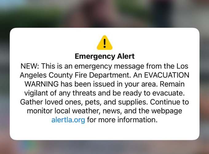 Evacuation Warning’ emergency alert mistakenly sent to the entire area of Los Angeles county