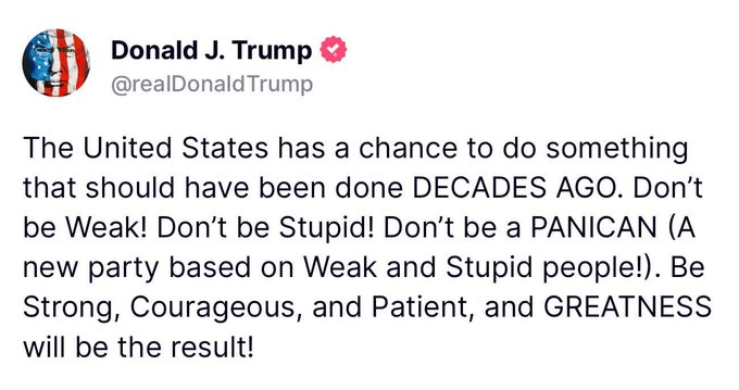 Kui pärast kannatusi hakkab kõik paika loksuma, sõlmitakse riikide vahel uusi tolle leevendavaid kaubanduslepinguid - saab edu raporteerida, ka aktsiahinna kohta on mõned investorid korrutanud "rahu ainult rahu", kus sajad miljardid aktsiakahjumit võib täita küll uudispealkirju aga see on suure tõenäosusega ajutine ning mõned näevad aktsiapõhjas võimalust odavalt oma portfelli täiendada.