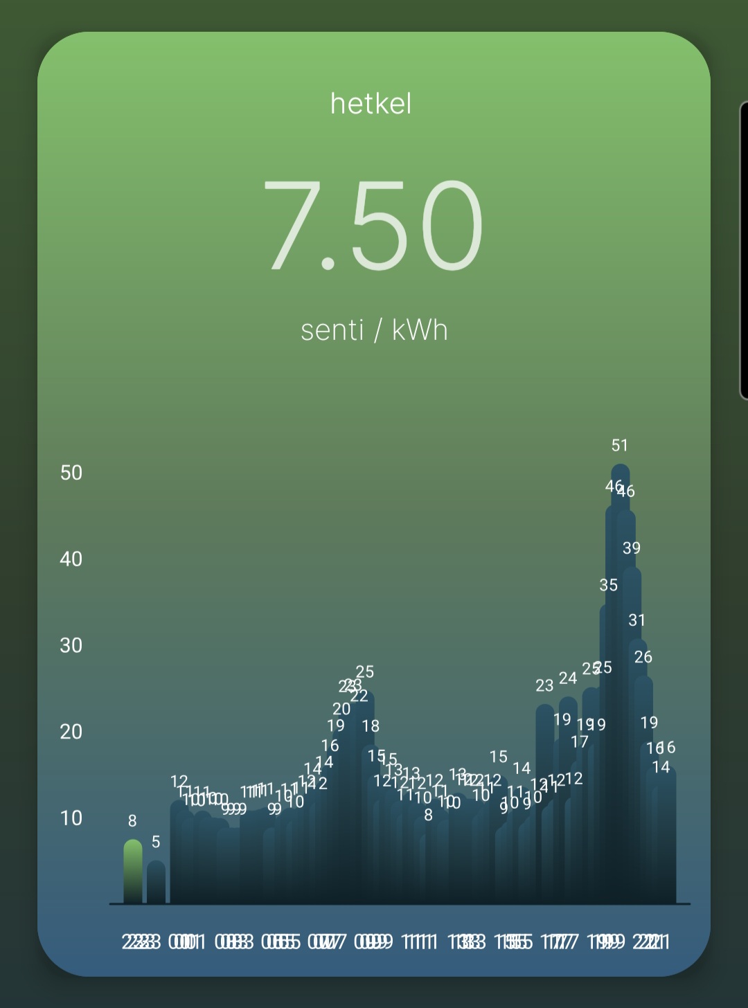 Mis veel uue "energiasae" hammaste pilti vaadates nüüd silma hakkas on see, et iga päevane täistund algab ~50% kallima hinnaga kui iga tunni viimane veerand. Energiaspekulandid vist jooksevad Nordpoolile tormi nagu tarakanid praegu.
