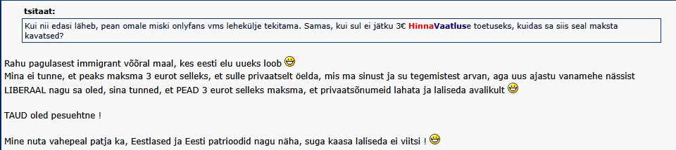Liberalism võimaldab sinul siin oma arvamust avaldada. Kuid sellega kaasneb ka vastutus öeldu eest. Sõnavabadus ei ole tasuta. 3€ on väga väike raha selle eest. Kuid sellest ei ole sa veel aru saanud.