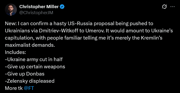 Witkoffi plaan oli ilmselt allaandmise plaan, mitte rahuplaan. Tiblade maksimalistlikud nõudmised pole muutunud.