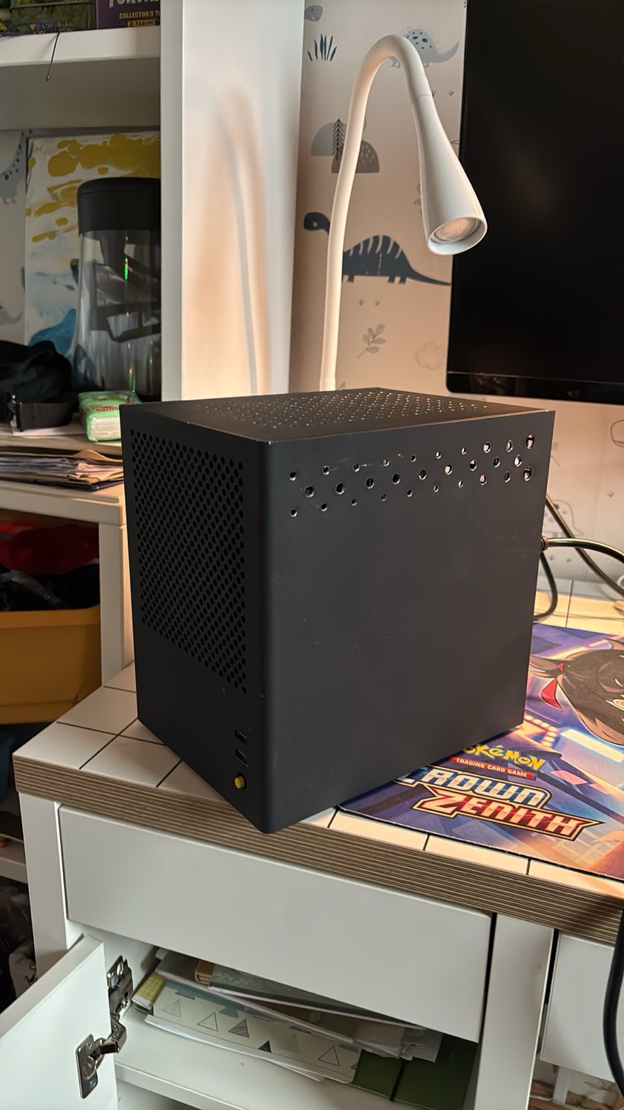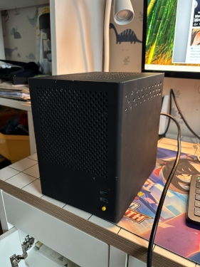 5. ITX korpus, mu mäletamist mööda on see, aastate tagant, kellegi kohaliku meistrimehe kätetöö, millele olen ise natuke auke juurde lisanud. Ees Noctua NF-A14 ventikas. Mahutab ainult ITX mõõdus emaplaati ja videokaarti ning SFX toiteplokki. AH: 20€
