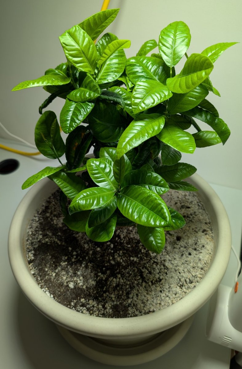 Ca 13 aastat tagasi seemnest kasvama pandud sidrunipuu. Esimesed ca 10 aastat veetis aknalaual ja kinnisel rõdul, kus kippus valguse nappuse tõttu venima. Korduvalt pügatud. Rõdul kannatas talviti edukalt 0-lähedasi temperatuure. Perioodiliselt langetas päris palju lehti. Paar aastat tagasi langes lehekahjurite invasiooni alla, mistõttu sai nulli pügatud. Taim taastus väga hästi 50W LED ribaga ümbritsetud kupli all. Kui kuppel väikeseks jäi, läks puu 200W UFO LED alla 16/8 tsükliga. Kasv aeglustus, mistõttu ostsin spets taimelambi (200W UFO LED koos punaste dioodidega). Sellest polnud kasu – uued kasvud kipuvad kiiresti ära kuivama, olukorda ei parandanud ka lambi liigutamine puust kaugemale. Ei tea, kas see on tingitud ebaoptimaalsetest kasvutingimustest (harjunud rõdul suvi-talv vaheldumisega?) või geneetilisest pagasist (seemnest kasvama pandud puu ei pruugigi viljuda). Kasv tundub üleüldse olevat spurtidena - viskab paari nädala jooksul uusi lehti ja seejärel on kuu-kaks standstill. Igatahes ei taha ma enam lambi elektrikulu kinni maksta ja otsin talle uut omanikku. Varsti lähevad lambidki müüki.