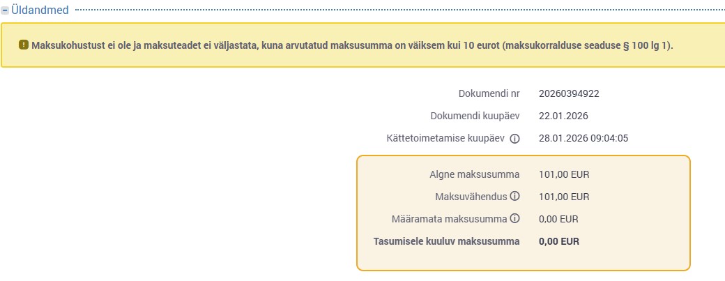 Automaksuteade tuli, alla 100 eur seekord, vast saab kuidagi hakkama.