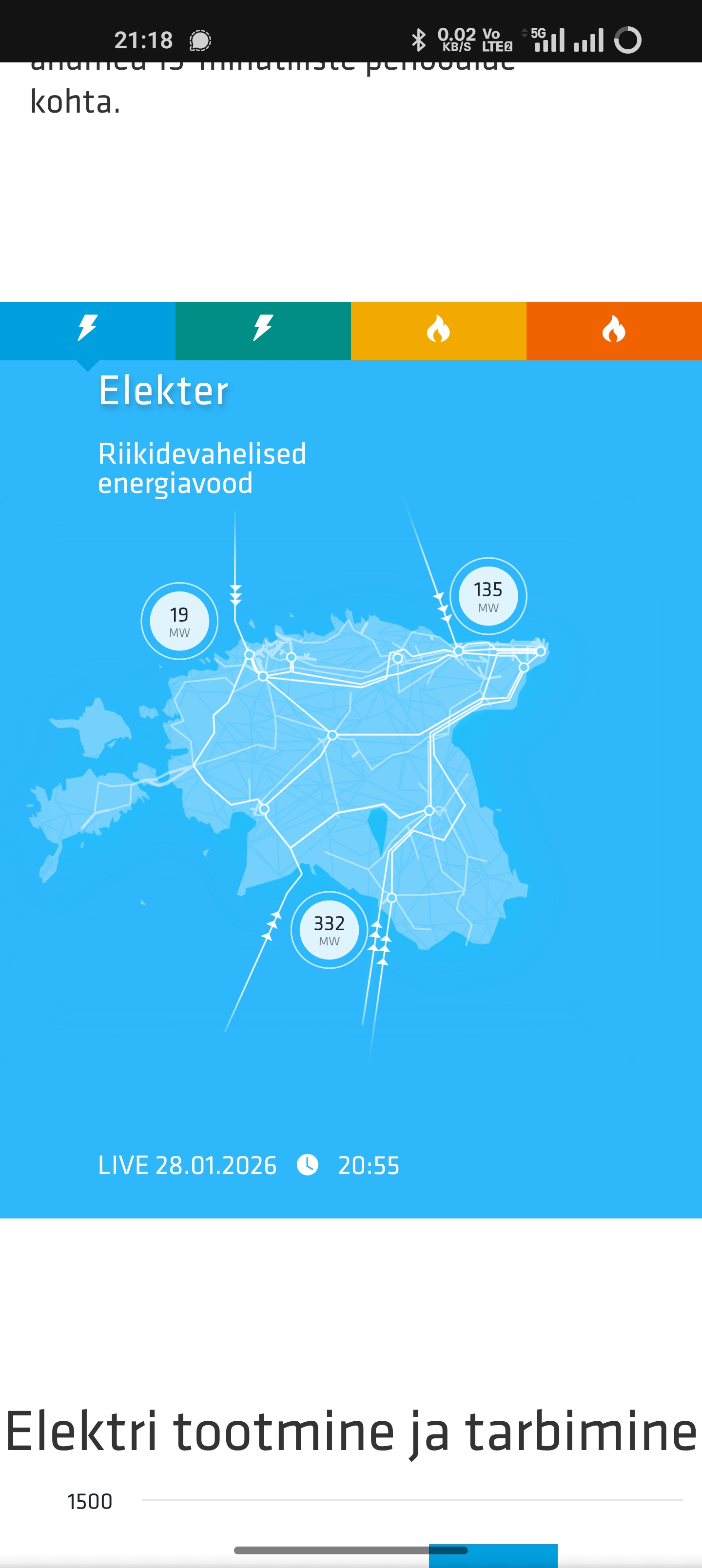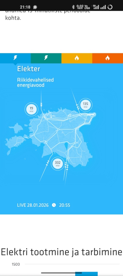 Tavaliselt näinud, et Estlink1 paneb max ja sama palju liigub ka välja lõuna suunas ja Estlink2 kuni max võimsus meile tarbimiseks...
