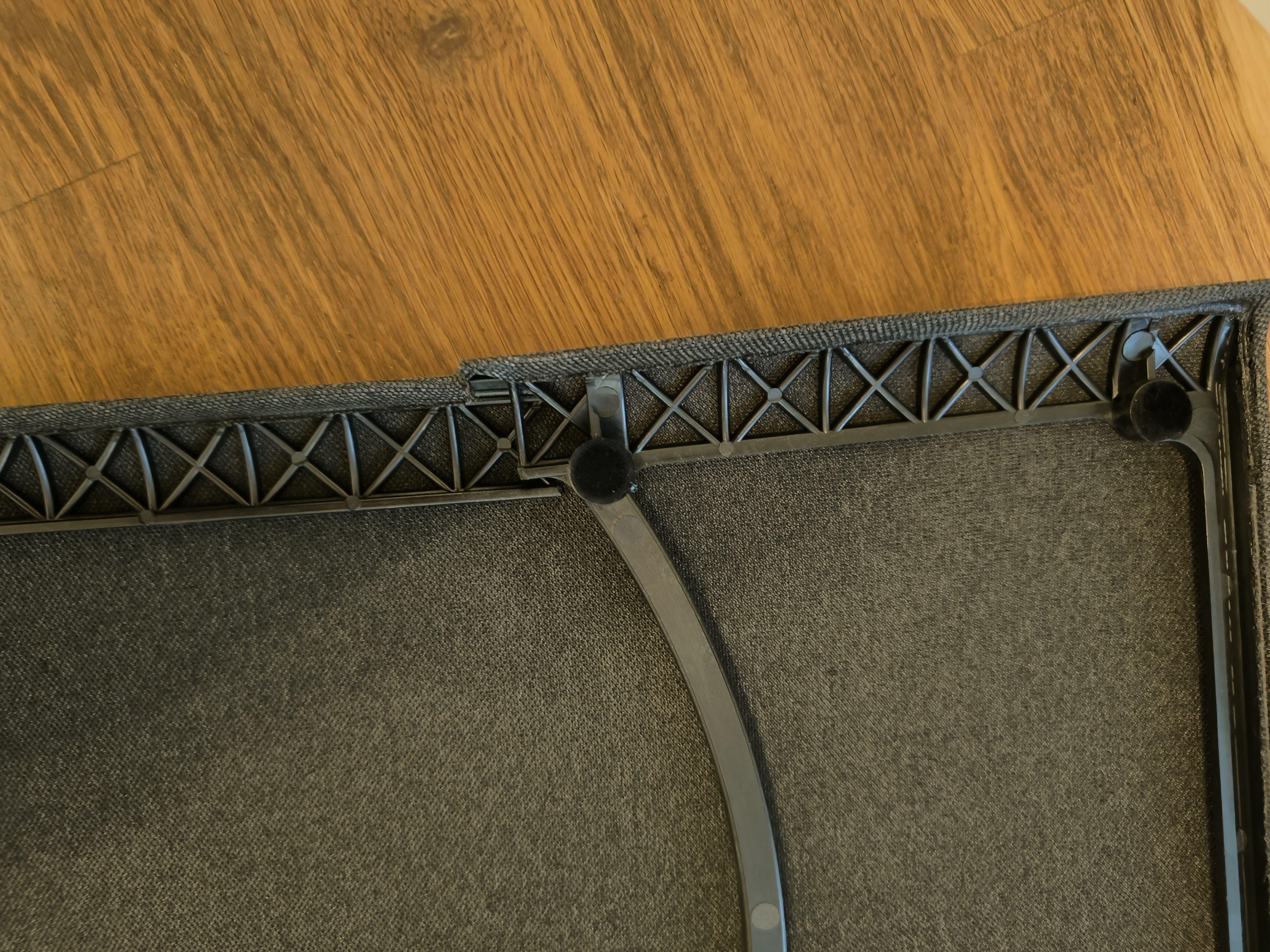 Pilt kõlarist koos katkise kattega ja lisaks pilt vigastusest.