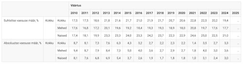 Absoluutne vaesus (üldistades - inimesed kes ei tule igapäevase eluga toime) langes meil kenas tempos kusagil 2022 aastani kust alates on see jälle ronima hakanud... Tasakesi aga ronib.