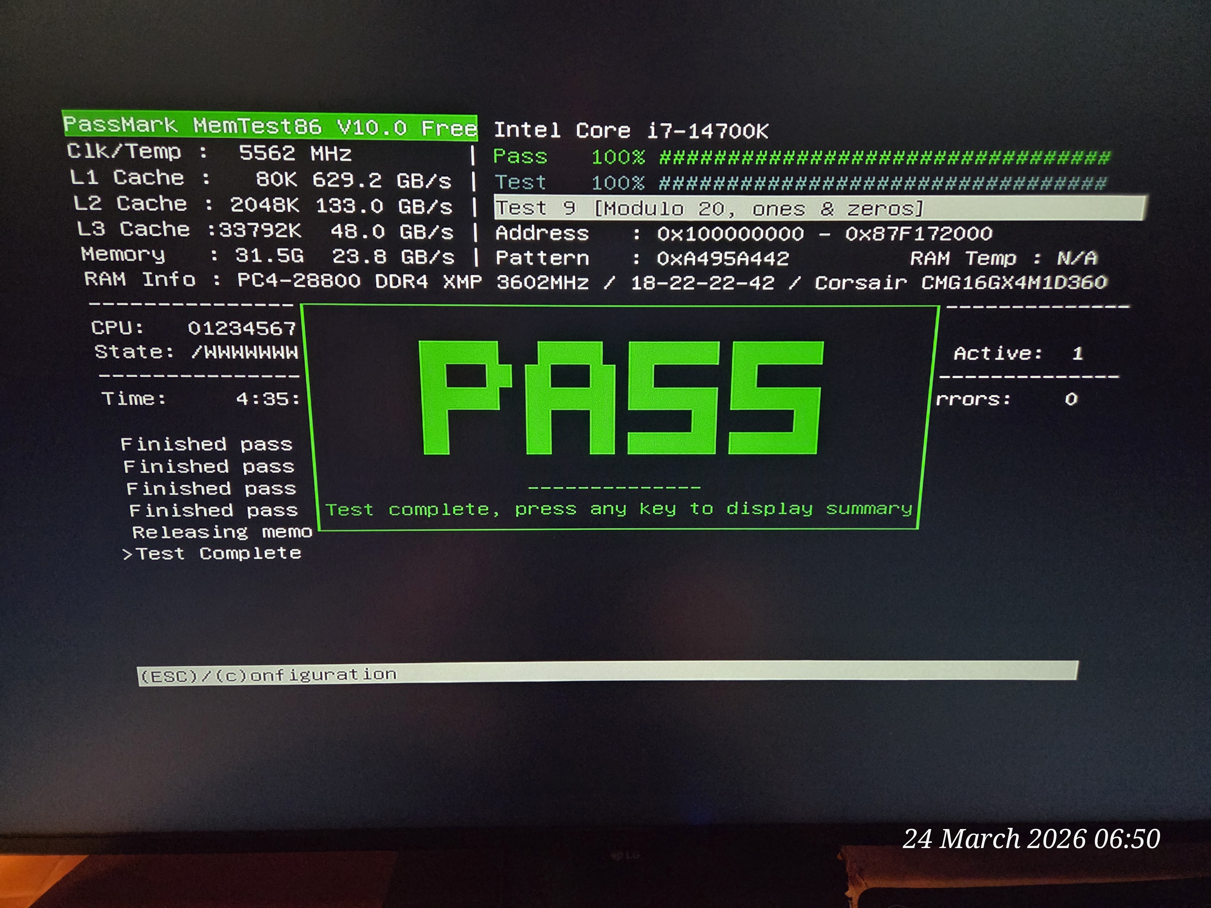 - Memtest86 PASS
