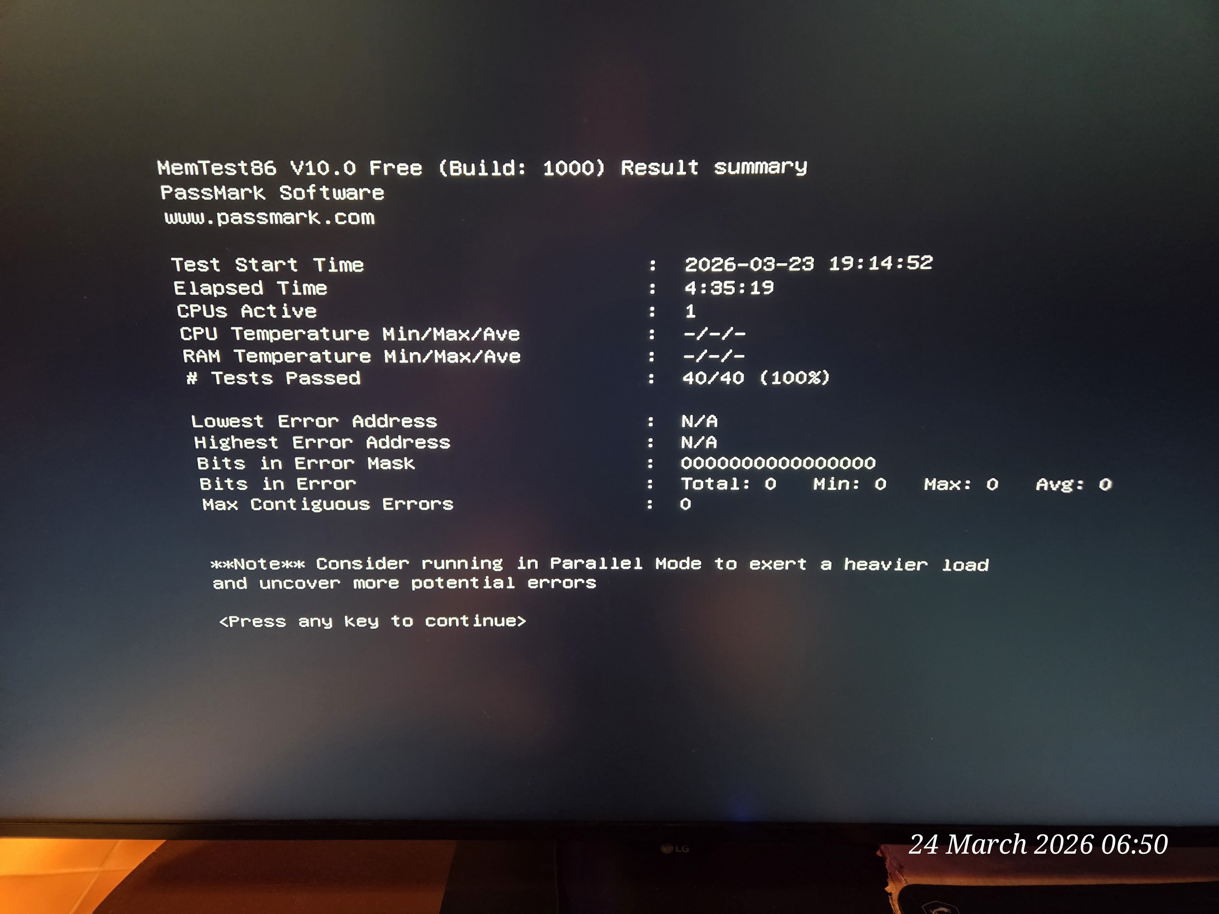 Lisaks lasin mälud üle ka MemTest86-ga: