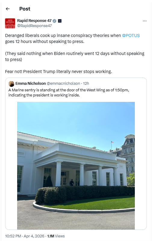 Laupäeval ei toimu samuti avalikke esinemisi, mis on sotsiaalmeedias käivitanud väikesemahulise kuulujuttude vohamise presidendi tervise ja isegi surma kohta.
