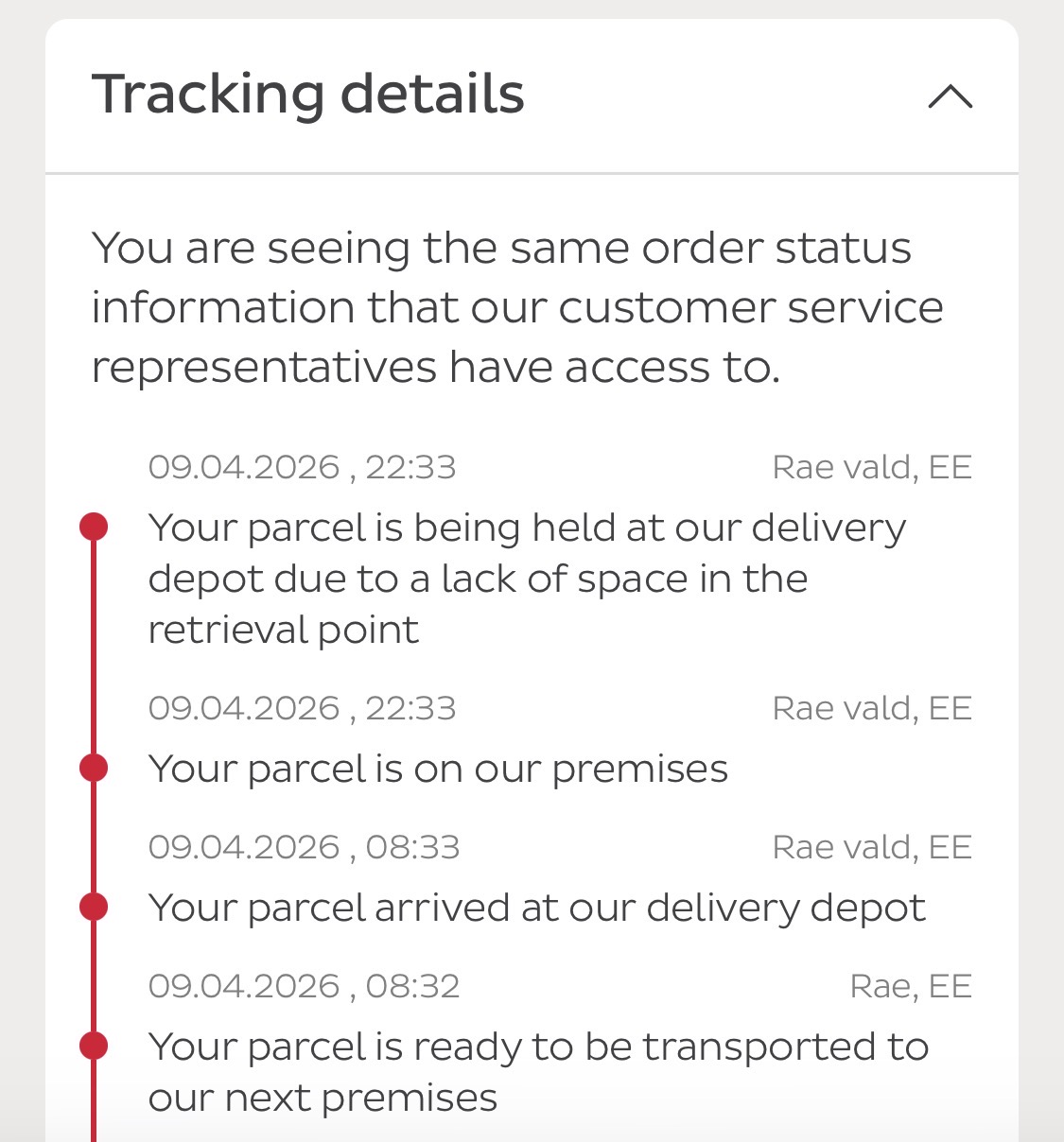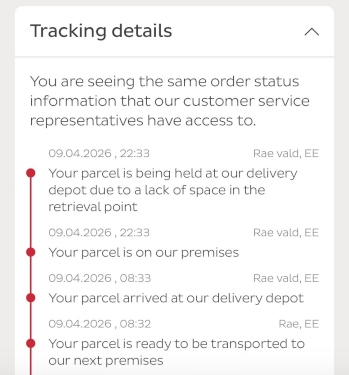 Pakk on sorteerimis vea tõttu läinud valesse linna ja seetõttu ka toimetus hilineb. "