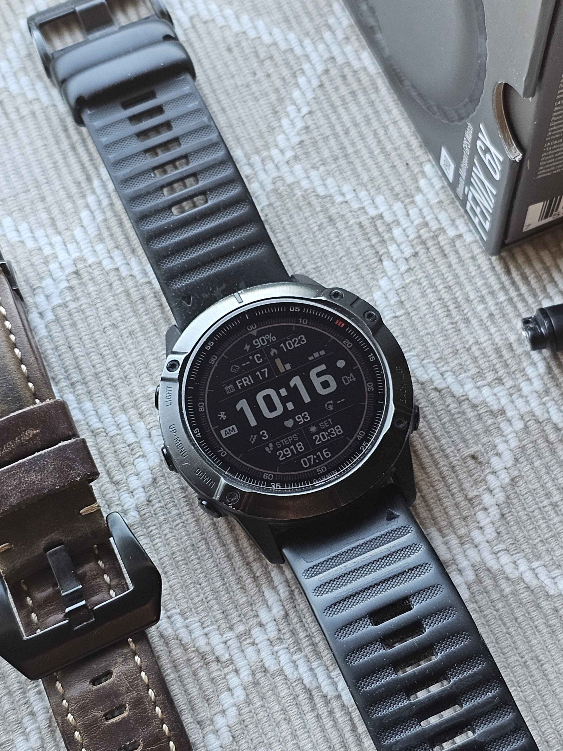 Täiskomplekt, lisaks nahast rihm ja üks varu kaitseklaas (hetkel üks kriimuvaba ka peal).