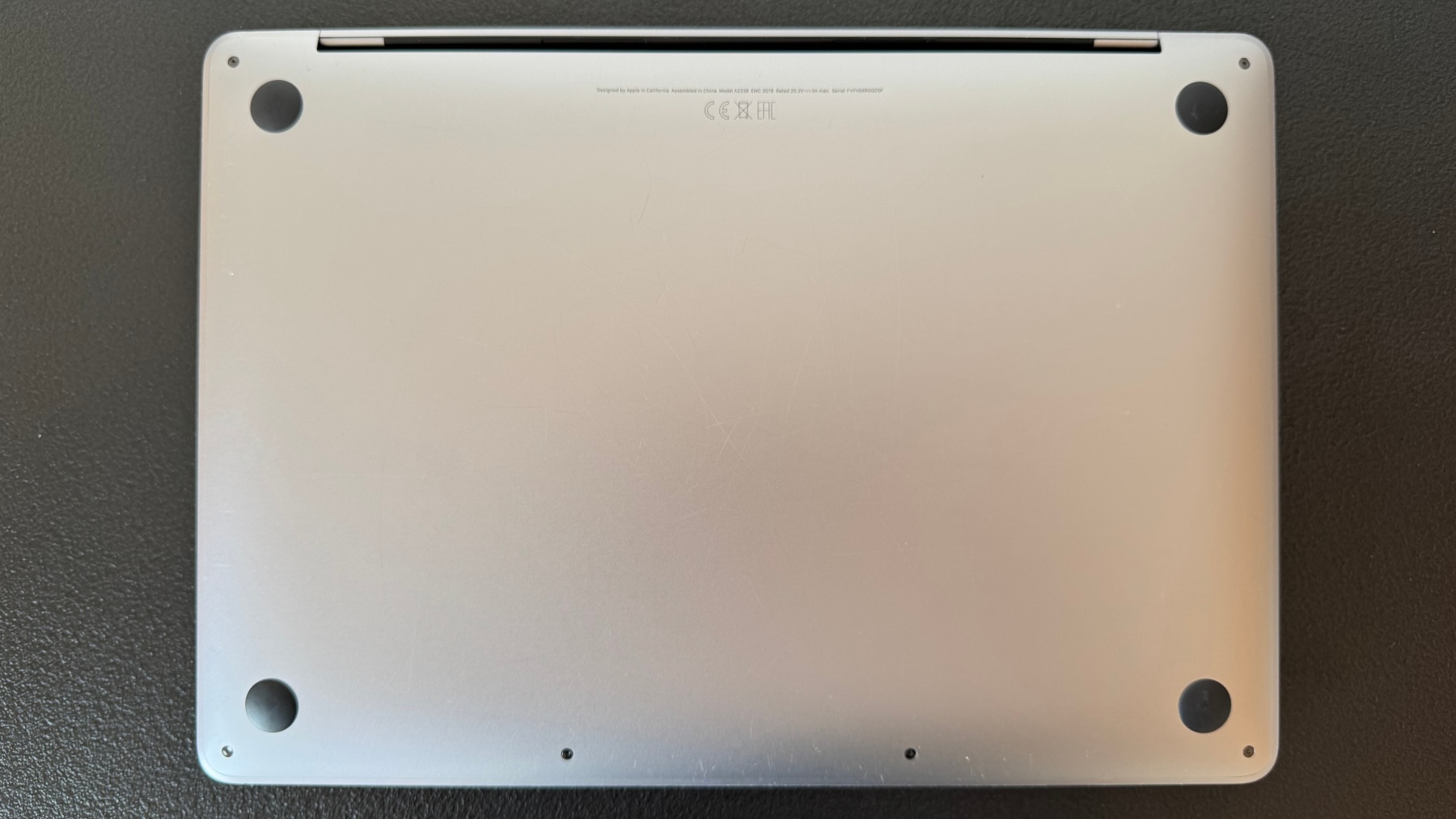 Sülearvuti on heas korras. Esineb kulumisjälgi eelkõige just põhja all ning pealmisel kaanel on näha kleebiste jälgi. Kaasa Apple'i originaallaadija koos laadimiskaabliga. Akut laetud 261 korda ja selle mahtuvusest 84% alles. Just tehtud ka tolmupuhastus.