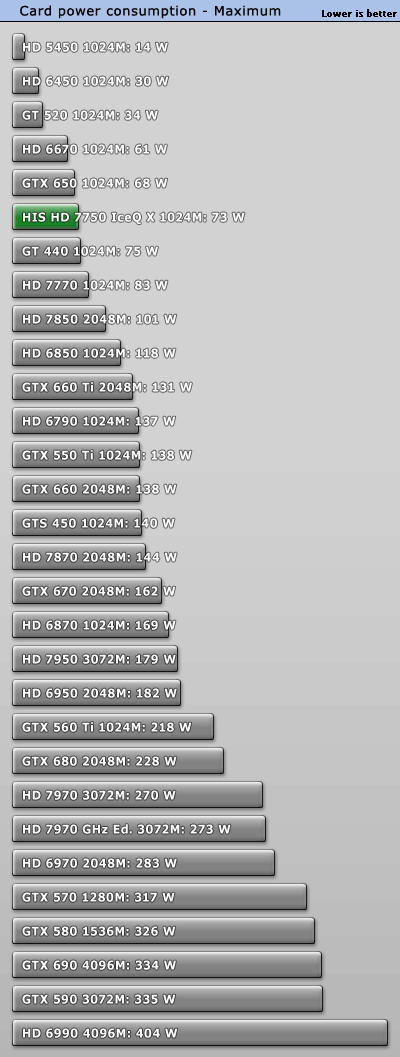 4GB videomälu vs 1GB standard muidugi veidi kergitab seda numbrit, aga mitte rohkem, kui 10W. Pakun, et kogu komplekt ei võta reaalse koormuse all isegi üle 300W. Rääkimata 500-550W. Näiteks minu profiiliarvuti mis on ribadeks kellatud ei võta üle 550W ka kõige ekstreemsemal juhul.