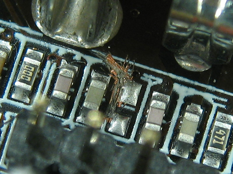 mis asja tehasest tulnud plaatidel oli mingi jootmis viga küljes ning selle kõrvaldamiseks võeti suvaline terav asi ja kraabiti üks rada (joode vms) lõhki ehk siis likviteeriti lühis. Vägev värk igatahes 8)