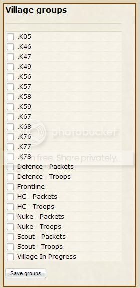 Similar to the above, this is for all the Nuke villages that need troops and are training still.Makes the recruitment of soldiers a lot easier, and managability of those villages simple. Another good group to send a lot of fakes from using the rams aswell.
