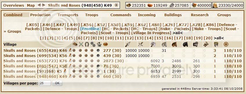 Completed Spear/HC villages. Every one of them houses 8000 Spears and 2000 HC. This making them good for quick support over distance and locally aswell. Being that they are all finished,its another storing packets group.