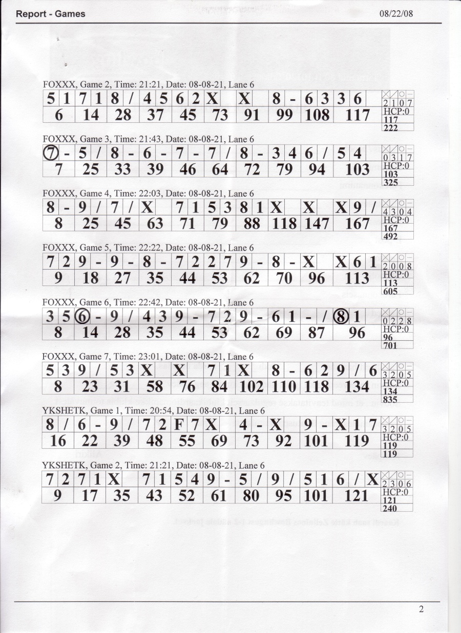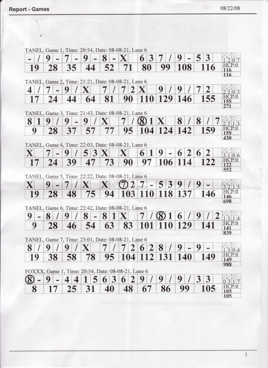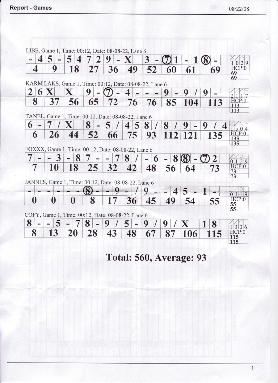 22.08.2008 toimunud bowlingu lehed, mis võlgu jäin (4 lehte).