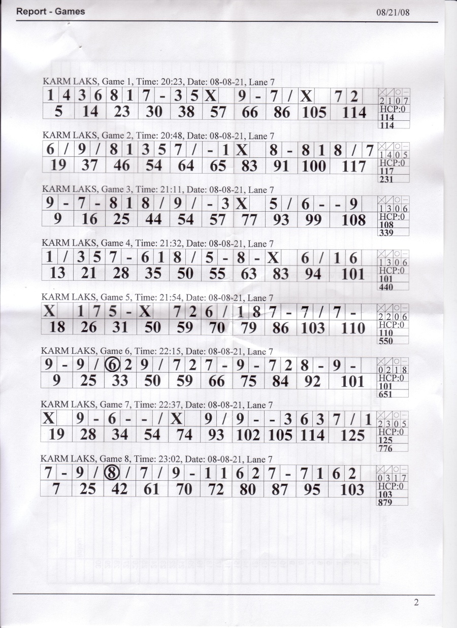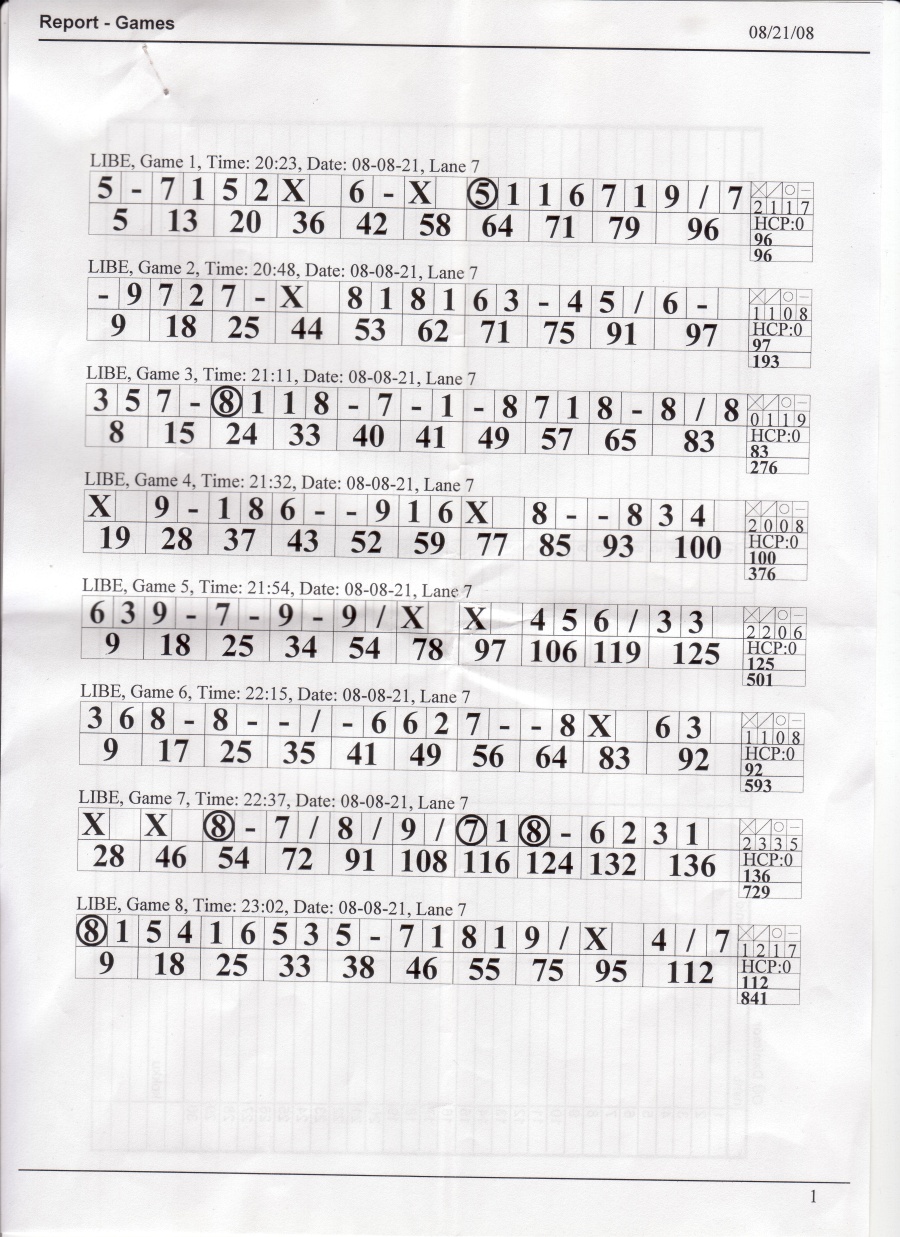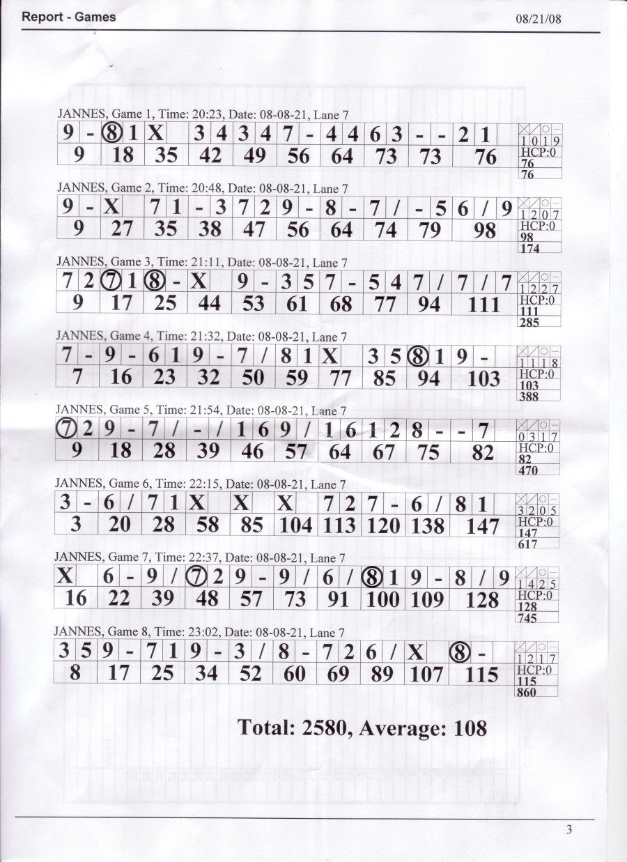 22.08.2008 toimunud bowlingu lehed, mis võlgu jäin (4 lehte).