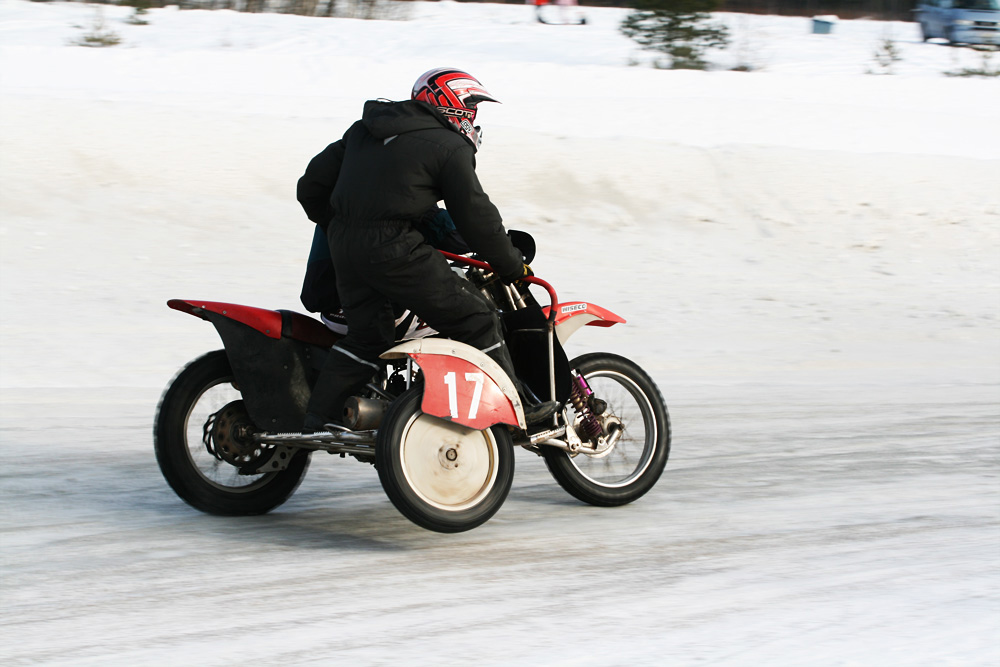 Sa kasuta pikemat säriaega ... kui teisel külgkorvil lund tagaratta alt ei paiskuks, võiks öelda, et ta seisab.