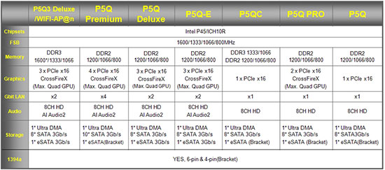 Asuse P45 baasil mobode kohta on mul kaks head tabelit: