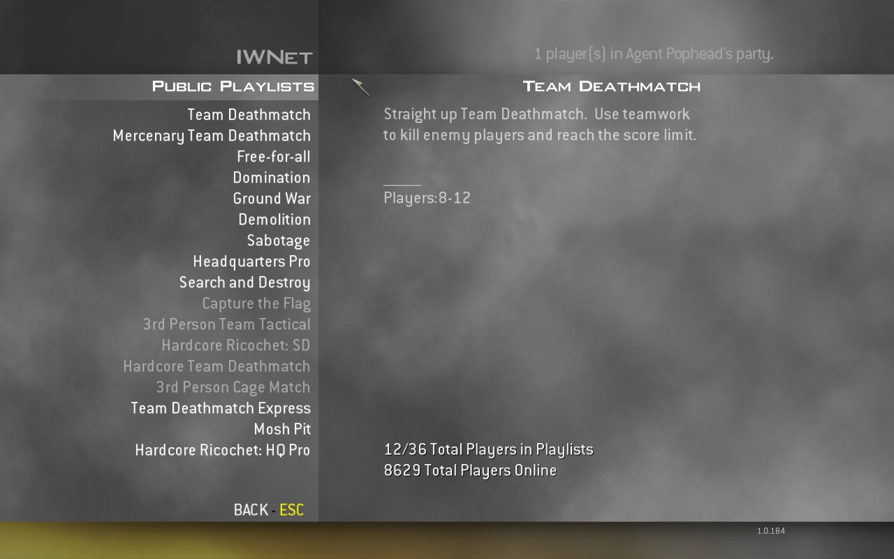 Sai siis tiba öösel täristatud. Map-id on normaalsed, hea vaheldus olemas olevatele map-idele. Nõme on ainult see, et ise ei saa valida game type-i. Saab valida aint HC ja mitte HC uute map-ide vahel, põhimõtteliselt Mosh Pit. Eriti vihastas mind see, et kõige rohkem lõi mulle S&D-id, kuigi ise absull muidu seda mängu tüüpi ei mängi. Samas ka see, et olenevalt ette söödetavast mängu tüübist ajasid kõik oma kille taga mitte ei teinud objective. Aga muidu mulje hea ning tundus et ka lobby-s ei pea enam nii kaua istuma peale uut update-i.
