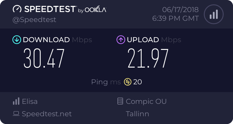 | ma just vaatan et miks maksta 20/5 eest sama hinda mis elisas 50/20...... niivõinaa on mõlemad ühendused tippajal pees, aga siis kui tuleb peaks tulema 2x rohkem läbi...... pean mingi päev elisast läbi hüppama