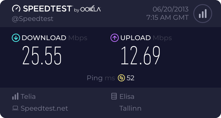 Tegin ka mõned testid. Paketiks on "Internet arvutis M+4G", millega peaks olema 15/3 kiirused. Mastiga otsenähtavus, lisaantenne pole.
