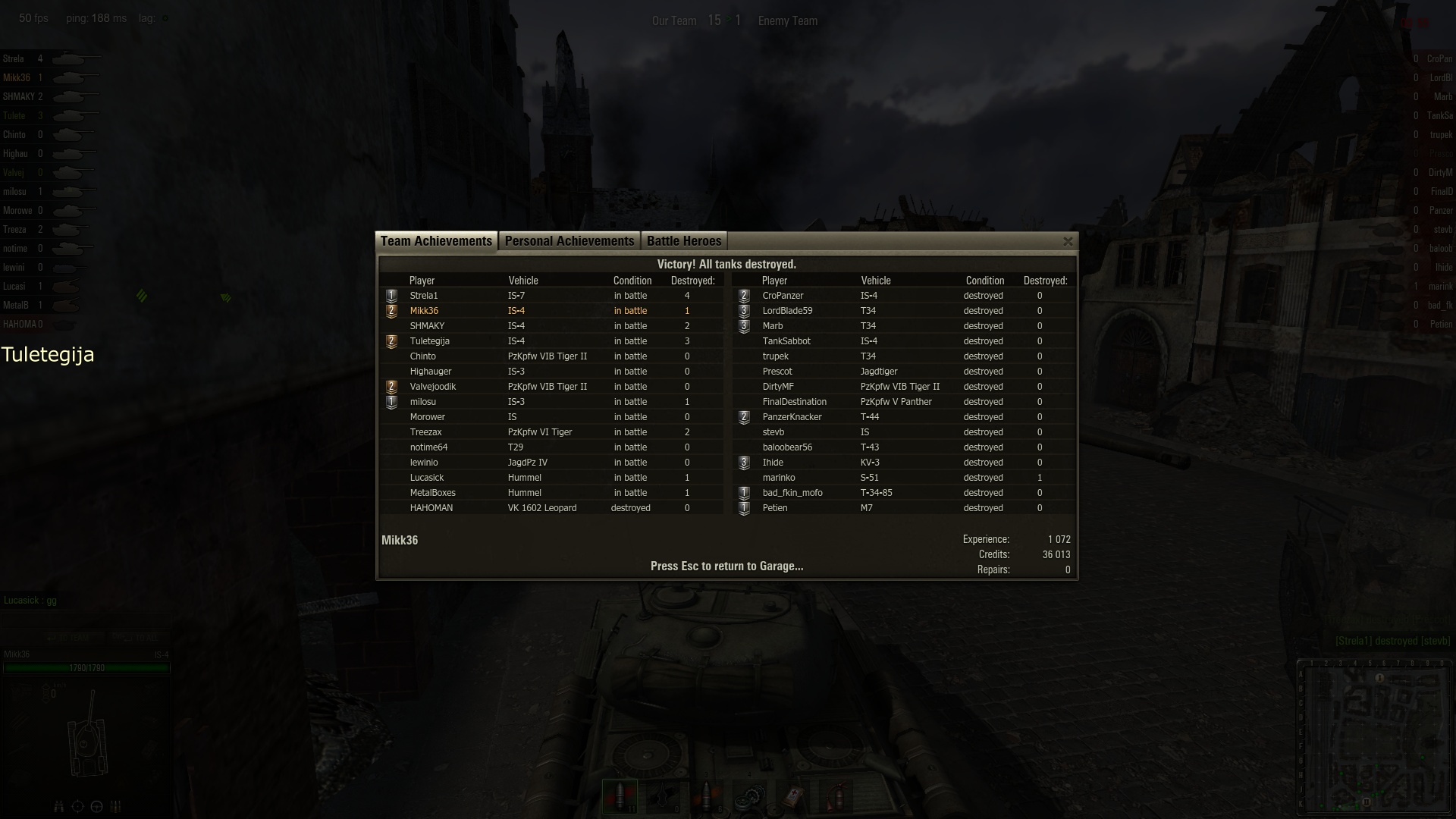 IS-3 on tore küll, aga kui koguaeg kaotused tulevad, siis repair costs on päris kole...