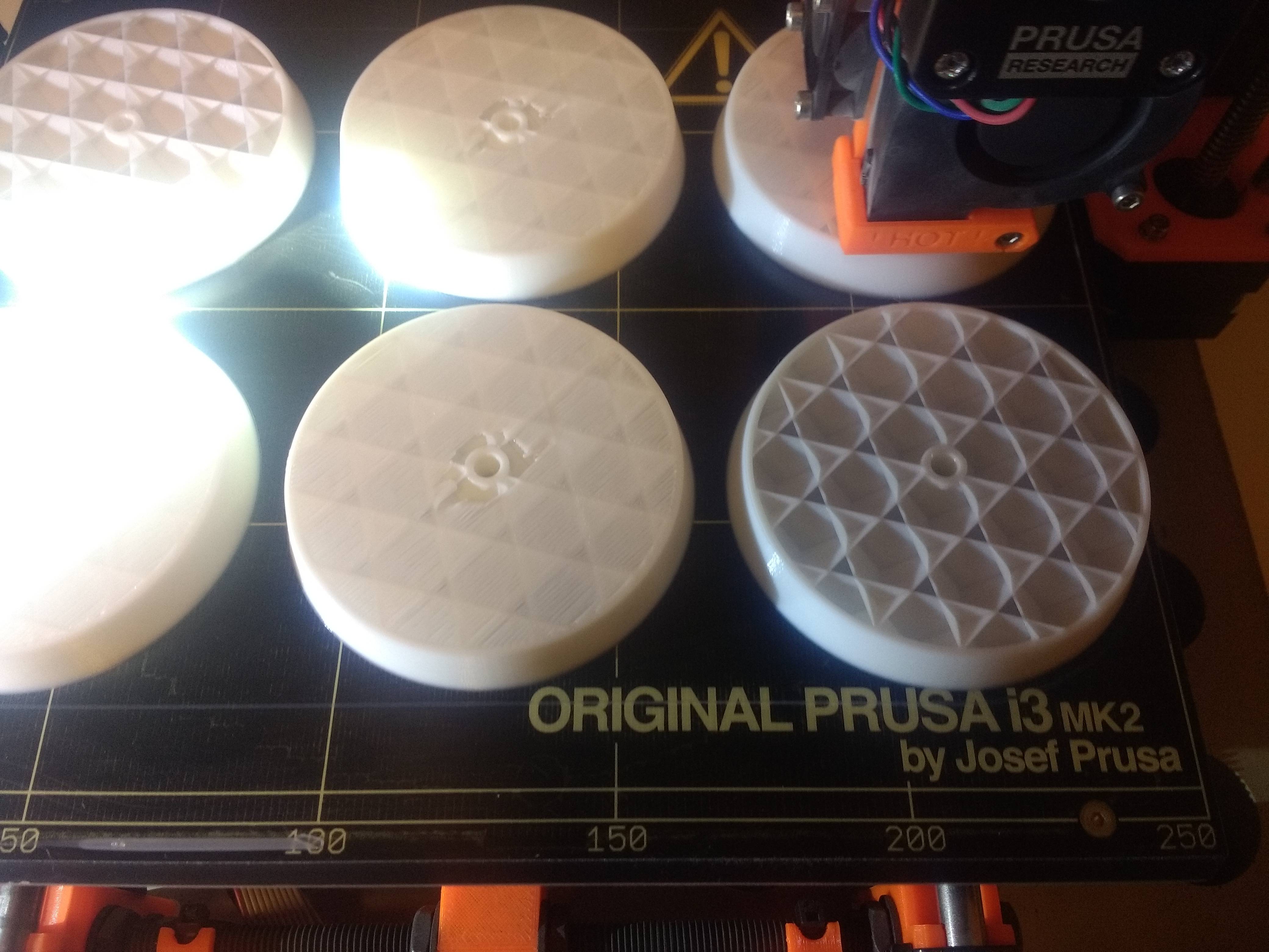 Prinditud ketaste saba (sinna taha tuleb väike silinder) ei elaks treipinki panemist kuigi hästi üle. Pole veel PLA-d treida proovinud. Isegi liivapaberiga kippus sulama võtma.