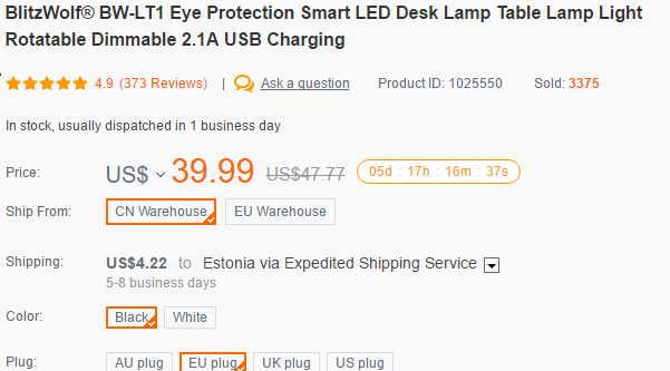 Banggood poest sai lamp tellitud, kuller vaid 4 daala, tavaline post oli kallim